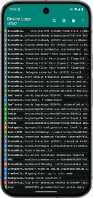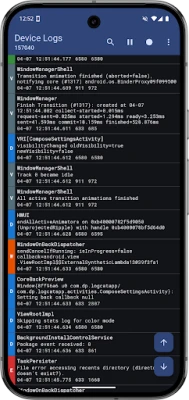 • Save logs as a simple text file (as you would see via logcat)