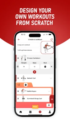 Structured gym workouts: Organize exercises into blocks, log sets, reps and weights.