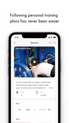 Once you’re in a plan, you can simply swipe left through exercises to move throughout the program. At the bottom of each screen you’ll see a workout timer and the ability to record sets, reps, weight, and time. Each exercise comes with a photo & video so you’re never left in the dark when it comes to form on specific exercises. Recording your fitness programs in the program will help let your trainer know exactly how hard you’re working to achieve your fitness goals.