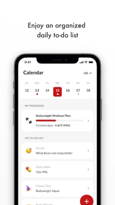 From there, slide over one tab to the fitness calendar that will act as your daily workout planner. When your coach assigns you a fitness plan, asks you to weigh yourself, track your daily nutrition macros, or requests a progress photo - you’ll find that to-do list right here. Clicking on the workout for the day will take you right to the first exercise of your fitness program.
