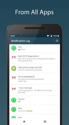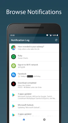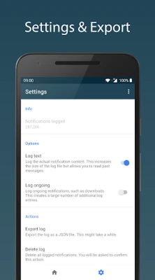 Notification Log records notifications locally. The app allows you to browse and export the recorded notifications (JSON format).
