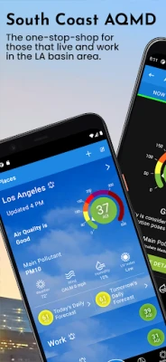 The South Coast AQMD app is the official air quality app for residents of the South Coast Air Quality Management District, which includes major portions of Los Angeles, Orange, San Bernardino and Riverside counties. Air quality experts provide real-time and forecasted air quality information using the highest quality data and scientifically validated methods.