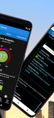 • Detailed Air Quality Data - Provides detailed air quality data for each saved city, the current and forecasted Air Quality Index (AQI), the main pollutant of concern for each location and health-related information. Users can also tap the "More Details" button for real-time information on all pollutants, yesterday's air quality data, daily highs and historical data.